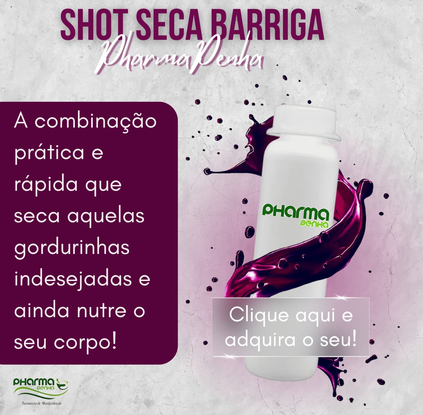 A MAIOR NOVIDADE EM EMAGRECIMENTO CHEGOU NA PHARMAPENHA!! SHOT MEGA CONCENTRADO DE VINAGRE DE MAÇÃ!! AMADO PELOS INFLUENCERS E BLOGUEIRAS DO MUNDO INTEIRO!! Emagrecimento rápidoCom fórmula inovadora para queima de gordura, o Shot de Vinagre de Maçã Mega Concentrado com...